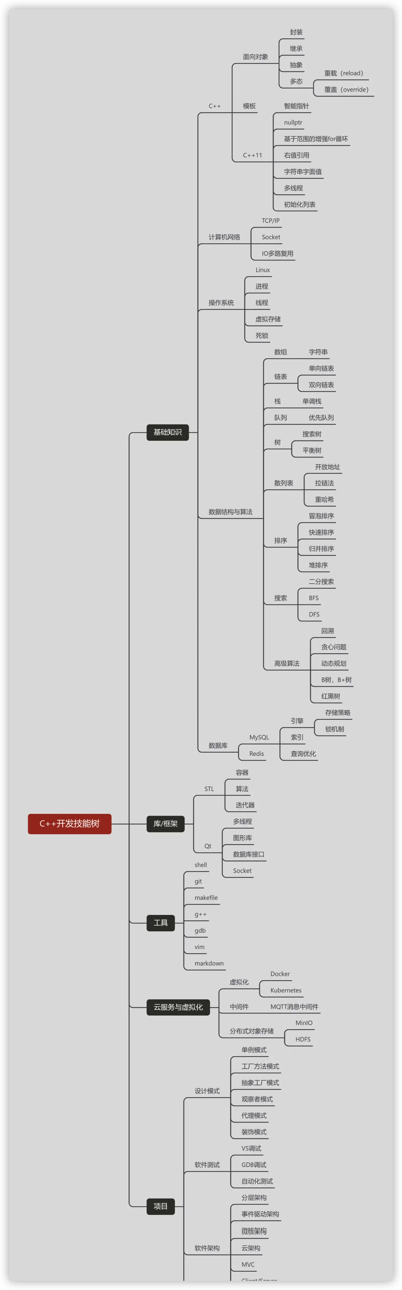 这里分享一下我总结的一张技能树图: