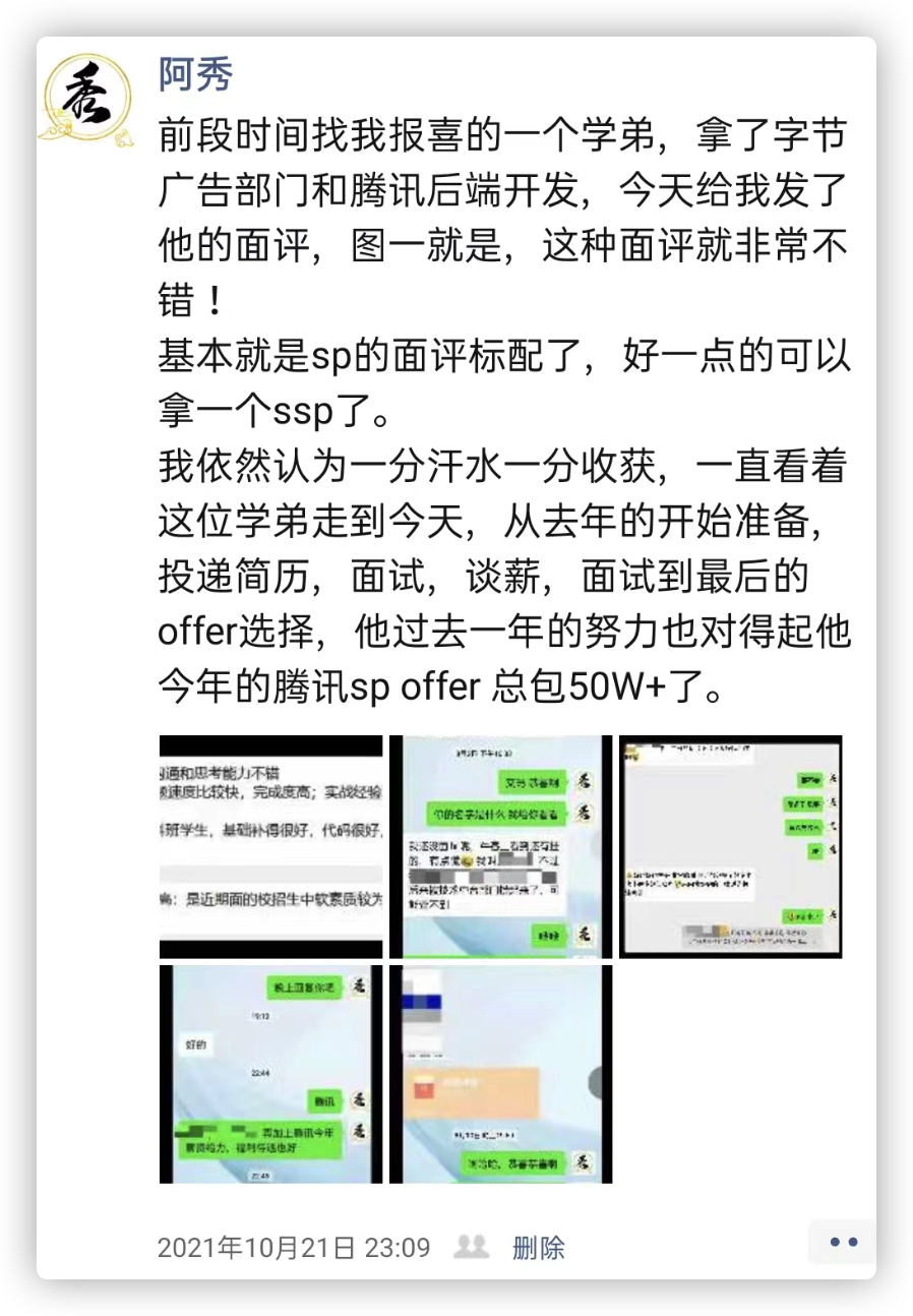 目前是拿到一家上市公司的SSP和其余几家的SP了,考虑再三接了拿个SSP,薪资和待遇都很令我满意,这里面有阿秀你的成果在里面。