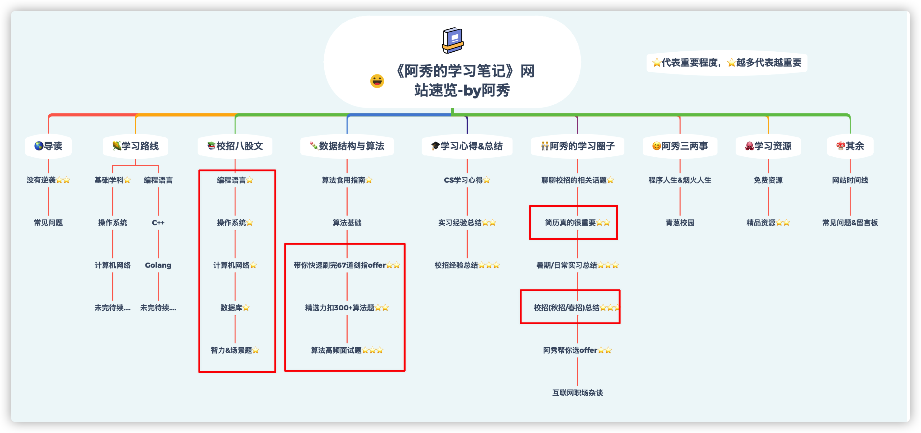 此外,对于每位阿秀的学习圈中的圈友也会奉上自己以前的学习和校招面试总结笔记,也就是《阿秀的学习笔记》PDF版本:计算机校招求职八股文PDF版本 (opens new window)